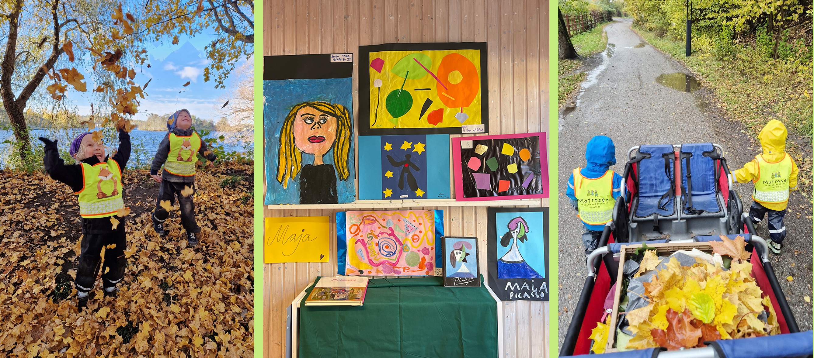 På Matrosen har vi en skapande inriktning. Genom arbete i vår verkstad stimuleras barnens kreativitet och finmotorik. Barnen får pröva och experimentera med färg, klister, lera, vatten m.m. Varje vår har vi som tradition en vernissage där barnen får ställa ut sina alster från det gångna året. dessutom jobbar vi varje år med teman utifrån barnens nyfikenhet och intressen.